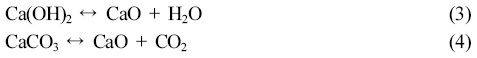 고형흡착제 제조 시 CaO는 상온에서 공기 중에 노출되면 H2O와 CO2를 흡수하여 수산화칼슘이나 탄산칼슘으로 되돌아 가려는 성질을 갖는다(eq. (3), eq. (4)).12,13