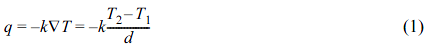열전도는 알루미늄과 공중합체의 접촉표면에서 공극이 없는 완전접촉으로 가정하면, 식 (1)에 나타낸 푸리에의 법칙(Fourier’s Law)으로 표시된다.14