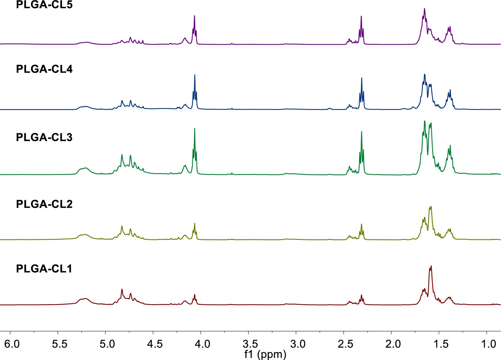 1H NMR spectra of PLGA-CL with different content of CL