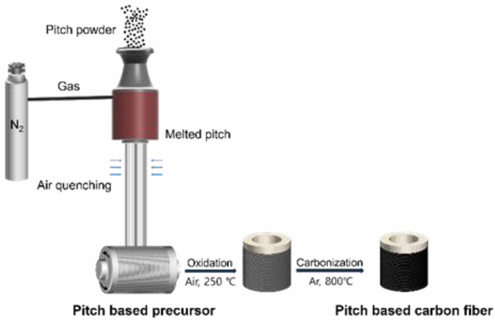Figure 1 Schematic illustration of the melt-spun and forming of activated carbon fibers. |