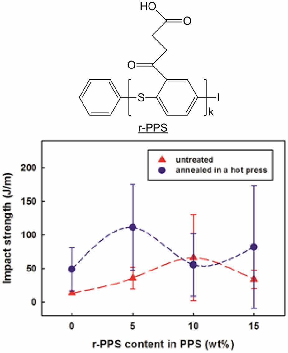 기존의 전통적인 방법으로 생산되어온 PPS의 경우에는 분자쇄 말단에 -SH 기가 존재하여 다른 고분자, 특히 말단에 반응성기가 있는 고분자와 혼합할 때는 친화성이 양호하여 상용성이 개선되는 효과를 종종 나타낸다.18 그러나 연속 공정으로 생산된 PPS는 분자쇄 말단에 이러한 반응기가 없어서 다른 고분자와의 낮은 친화성으로 우수한 상용성을 얻을 수 없는 실정이다.
