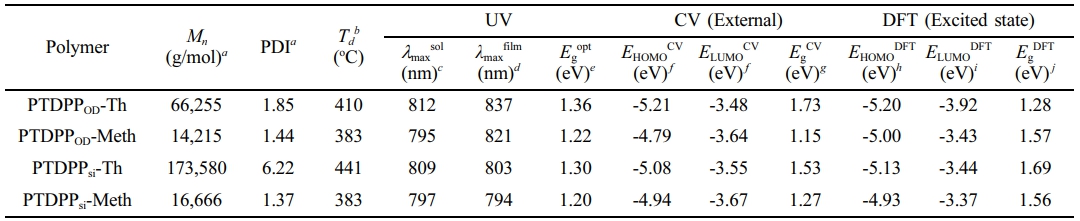 다음과 관련된 정보(GPC, UV-Vis-NIR spectrum(DFT))는 다음 사이트에서 확인 가능(http:// journal.polymer-korea.or.kr).