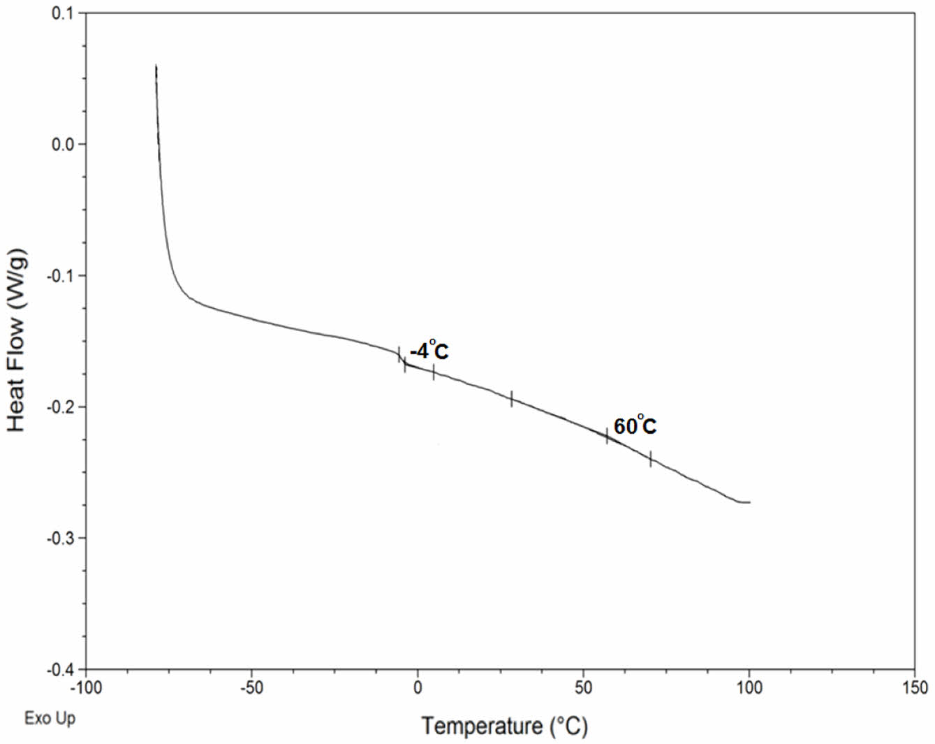 Another thermal characterization technique is DSC. Glass transition temperature and melting behavior of the polymeric materials can be determined by this method. DSC traces of the Epoxy paint matrix is presented in Figure 14. The matrix showed two Tg at -3.8 and 57 ℃ respectively.