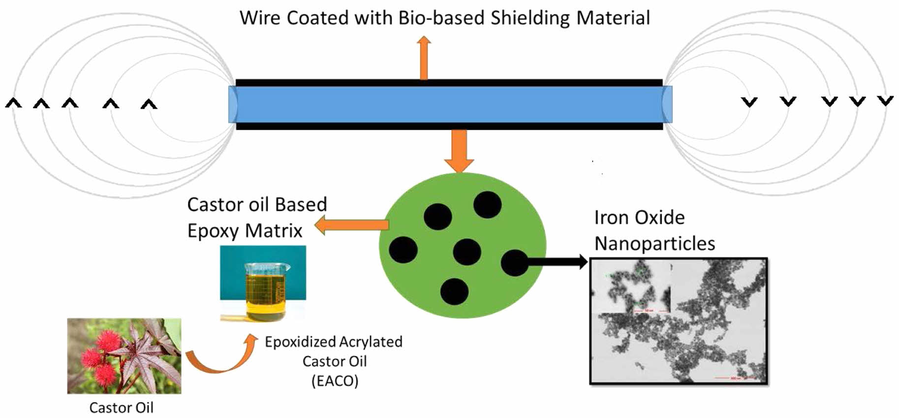 Keywords: castor oil, epoxy acrylates, renewable resources, iron oxide, magnetic shielding, electrical networks.
