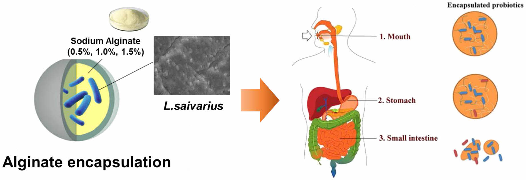 This study aims to improve the survival rate of L. salivarius during digestion by encapsulating it with alginate encapsulation. The strength of the capsules will be examined in simulated gastric and intestinal fluids to evaluate their stability in the gastrointestinal environment.