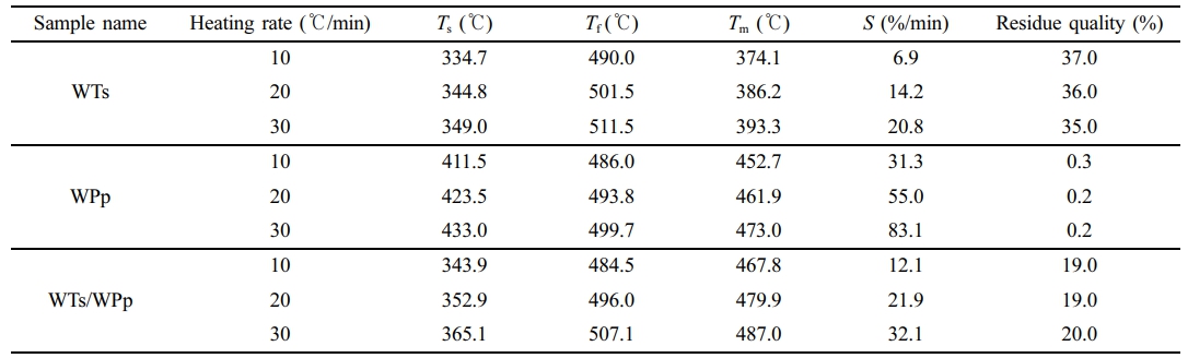 Pyrolytic Properties of WPp, WTs, and WTs/WPp