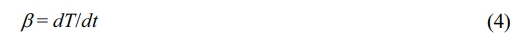 β is the heating rate in K/min in formula (4). When formula (4) is substituted into formula (3), the generic formulation for a heterogeneous and non-isothermal reaction is as follows: