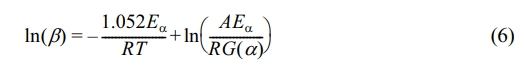 In formula (6), G(α) denotes the integral form of the pyrolysis mechanism function: The KAS method is articulated through the following formulation:30