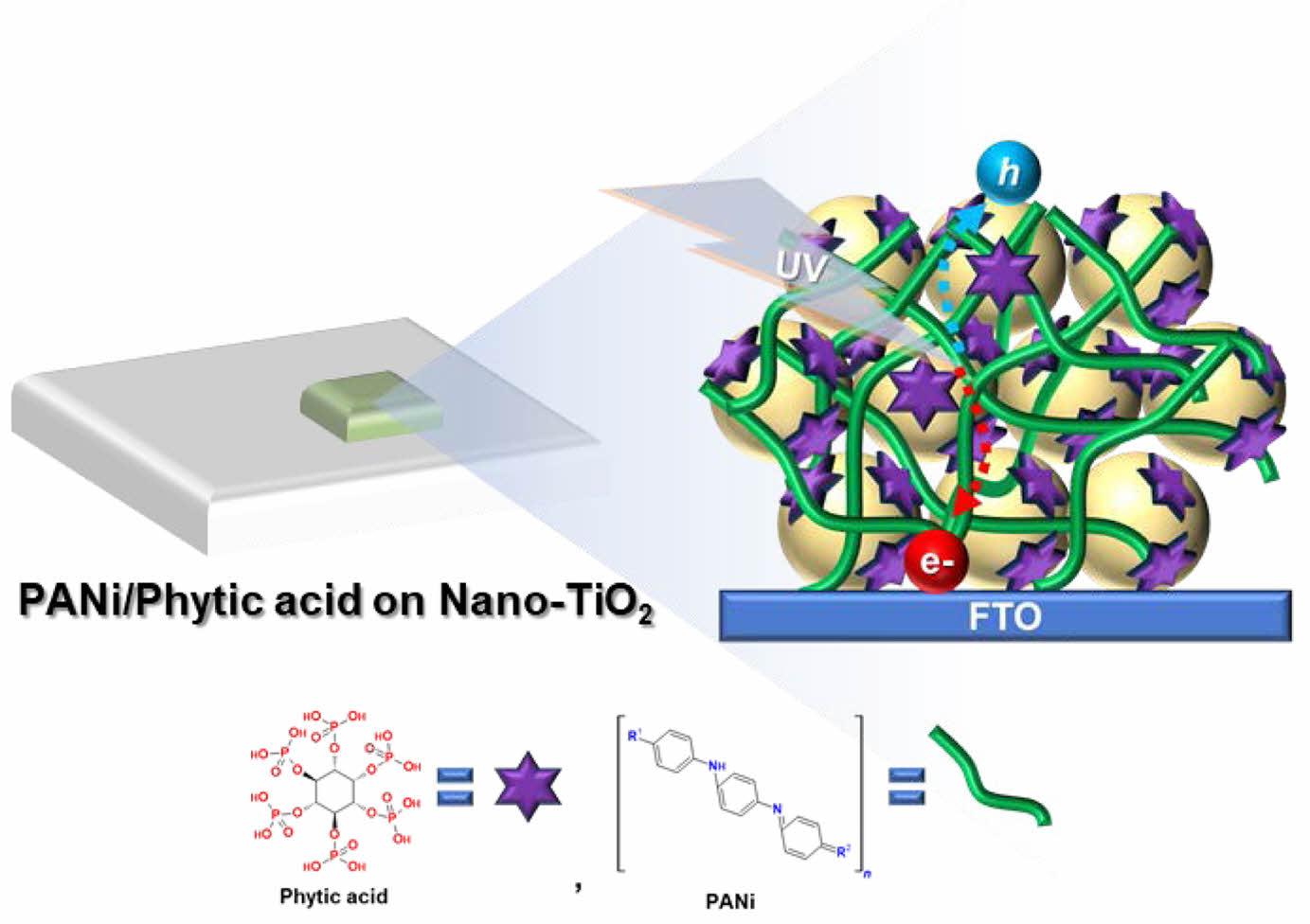 Schematic illustration for thin layer of PANi/phytic acid on Nano-TiO2 electrode.