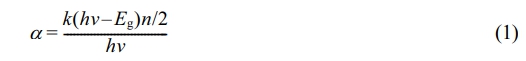 The optical properties have great importance in the study of photocatalytic materials because optical property represents the number of photons which will be absorbed during photocatalysis. Basically, the electronic structure and optical properties of prepared samples are analyzed by UV–vis spectroscopy. Tauc plot of PANi/phytic acid on Nano-TiO2 electrode prepared using various diluted reaction solutions was shown in Figure 5(a)-(e). The higher absorbance in the high wavelength region between 300 and 400 nm is shown in Figure 3(c). The optical energy band of a semiconductor was obtained by using the following equation: