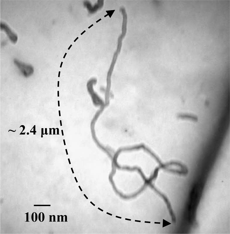 TEM image of synthesized polyaniline nanotube of length ~ 2.4 μm.