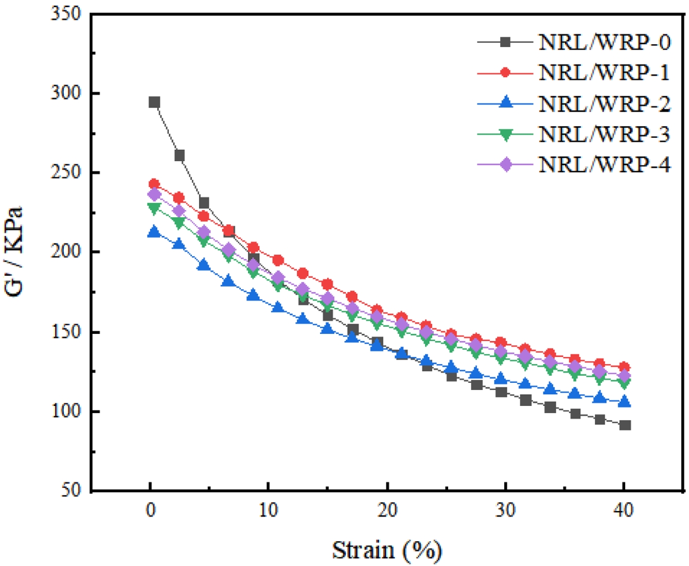 G' curves of NRL/WRP composites.