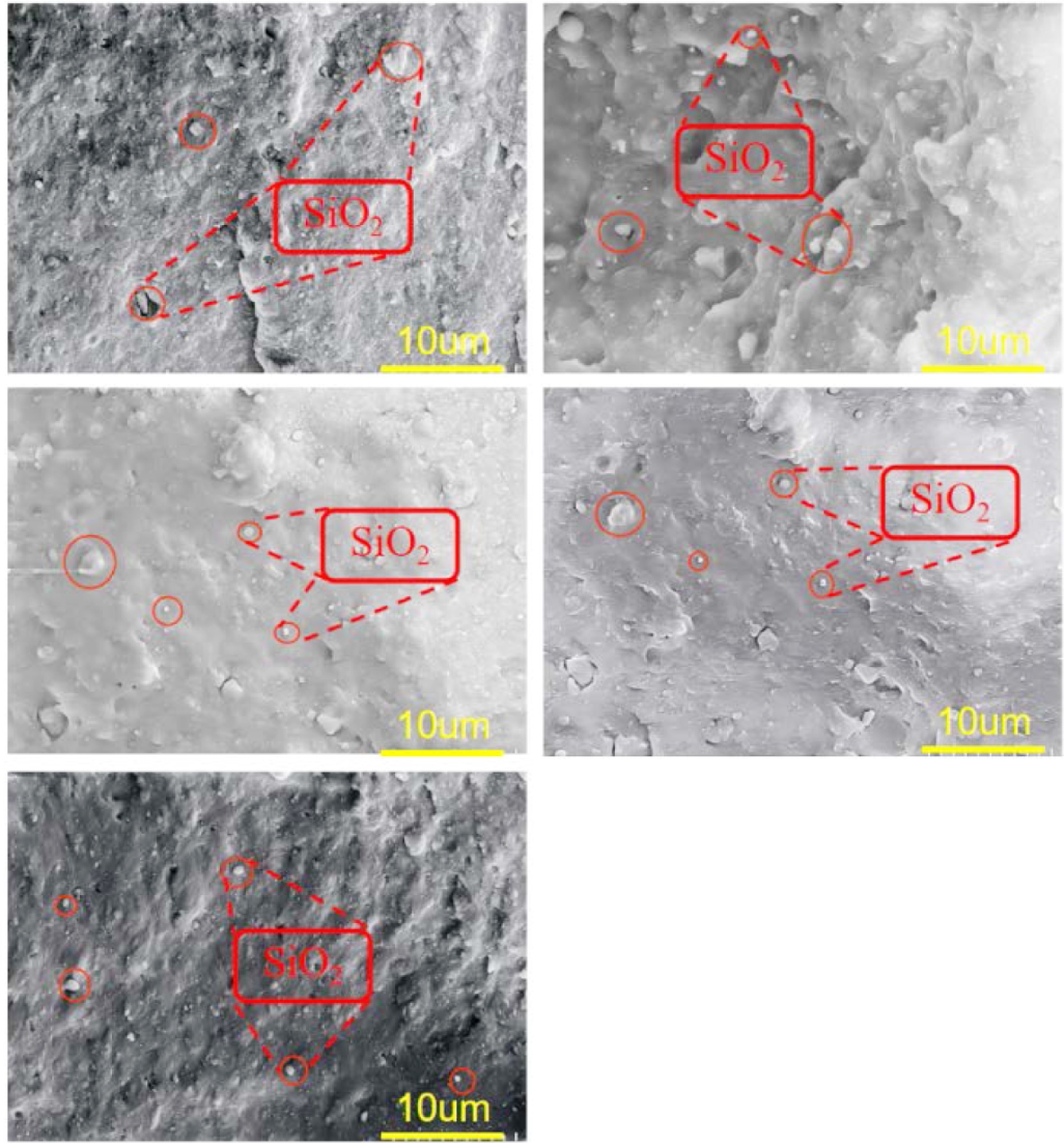 SEM of composites with different preprocessing methods.