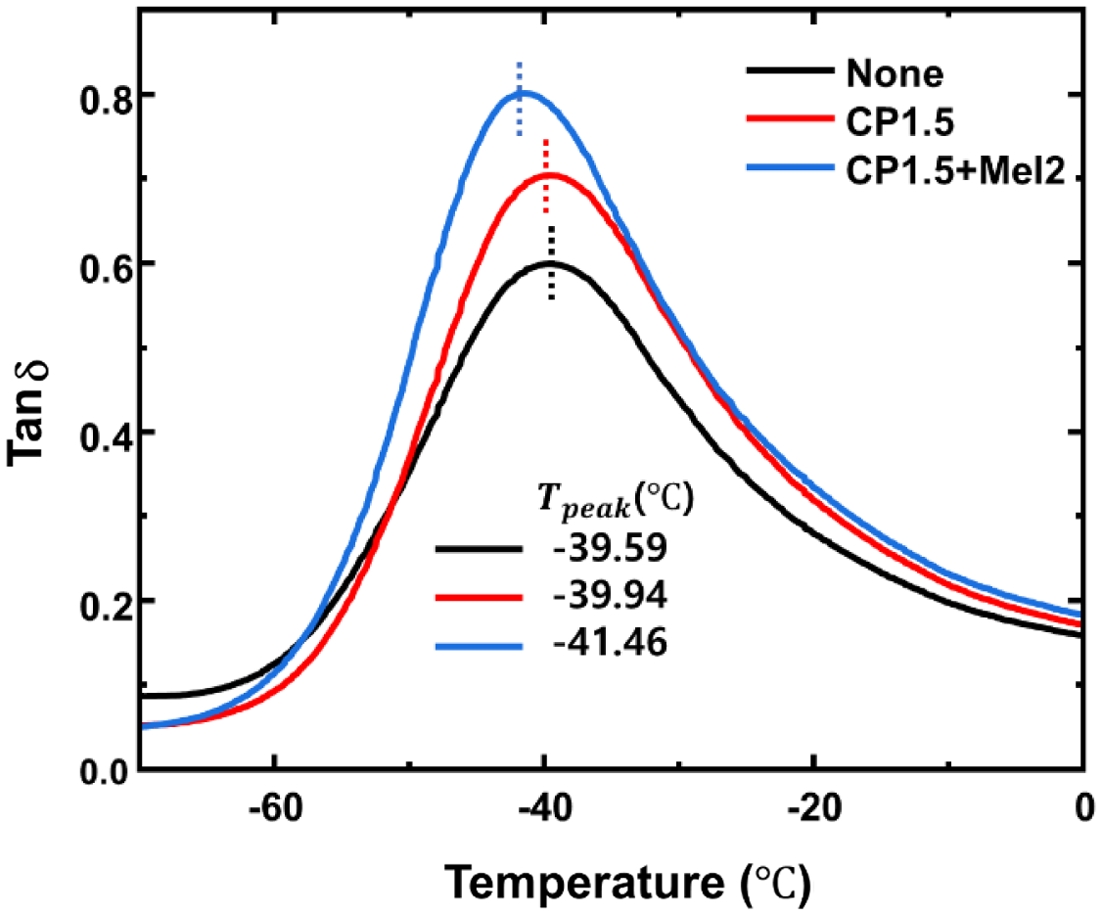 Figure 8 Thermomechanical analysis of tan δ with cyclopentane and melamine particles. |