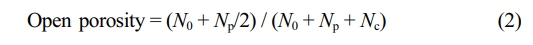 To analyze the morphology of the PU foams according to the cyclopentane content, 15 images per sample were analyzed using Image Pro Plus software to determine the pore size, cavity size, and open porosity. Open porosity was calculated using the following equation:
