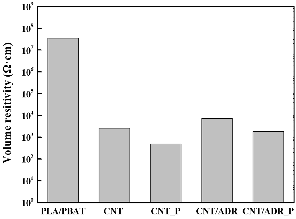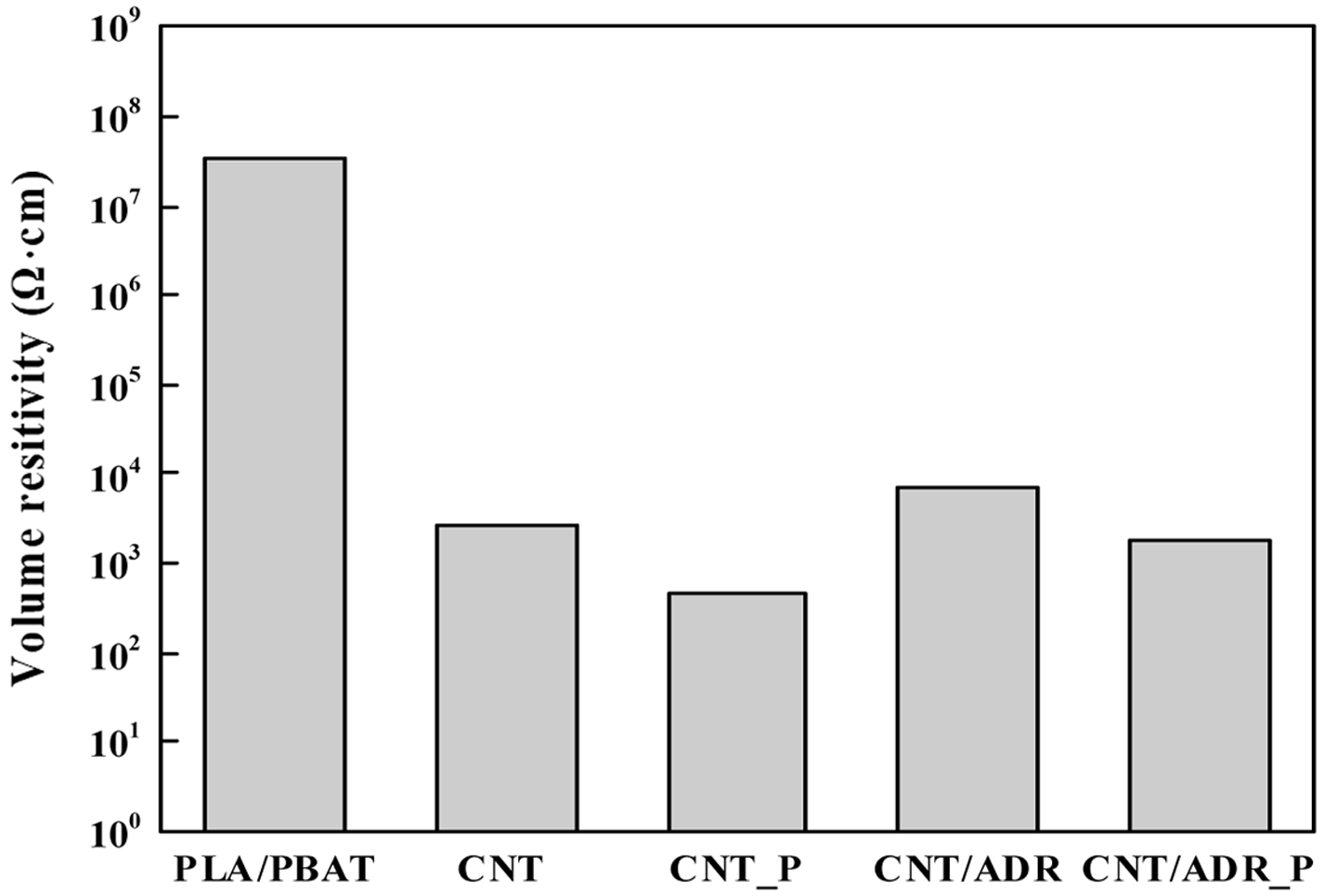 Figure 8 Volume resistivity of PLA/PBAT-based conductive composites through improved compatibility. |